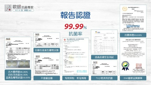 銀離子抗菌液是一款溫和不刺激,具有抗菌性、抗病毒的噴劑,產品通過SGS實驗室的細菌滅菌認證。病毒部份則藉由美國環境保護局公開分享銀離子抑制病毒的資料,有著無刺激性且有效的抗菌液來保護自己及家人。是防疫必備神物,就這樣誕生了歐銀這個品牌。